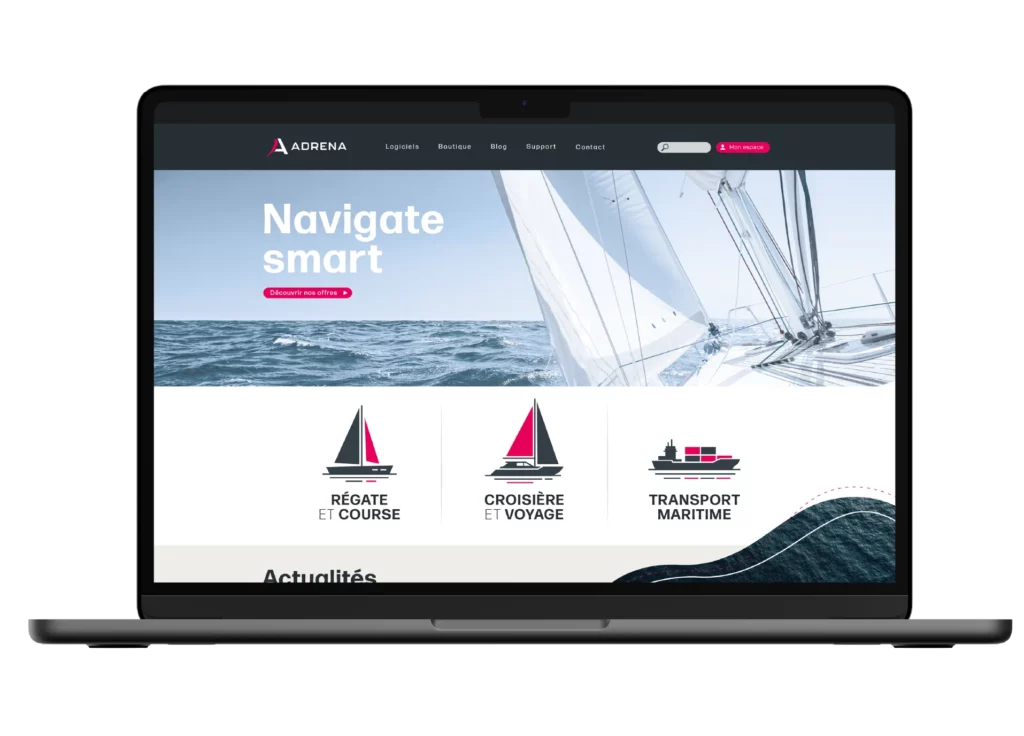 > Big Eddy a procédé à un lifting du logo, en renforçant l’esprit initial, et a crée une arborescence de marques. Le studio a aussi crée un univers graphique et coloriel singulier, mêlant technologie et mer.